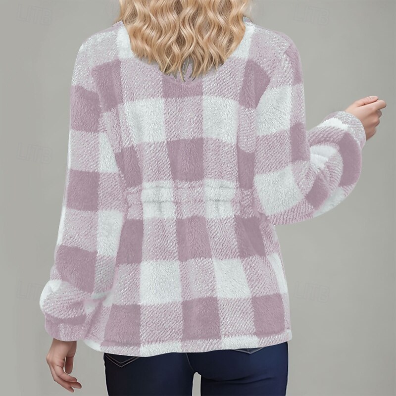 Women's Casual Jacket Warm Comfortable Zipper Pocket Casual Plaid Street Going out Weekend Zipper Regular Turndown Regular Fit Long Sleeve Outerwear Black Yellow Pink Fall Winter 2