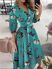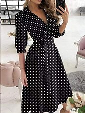 More information about Women's Midi Dress Corset Dress Summer Dress Bodycon Dress Fit And Flare Dress Vacation Vacation Daily Regular Fit Floral Half Sleeve Shirt Collar Black And White Black White Green Summer