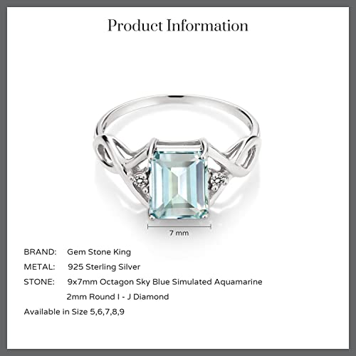 Gem Stone King 925 Sterling Silver Sky Blue Simulated Aquamarine and White Diamond Engagement Ring For Women (2.33 Cttw, Available in size 5, 6, 7, 8, 9) 5