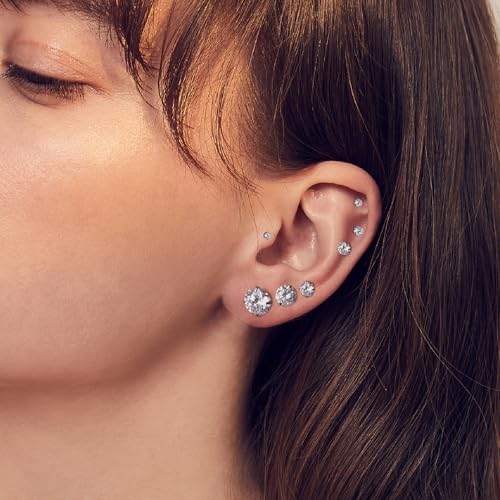 • Multiple Styles Stud Earrings: Hypoallergenic stud earrings set includes 7 pairs of silver earrings and 7 pairs of gold earrings for you to choose from. Cubic Zirconia diameter: 8mm, 7mm, 6mm, 5mm, 4mm, 3mm, 2mm. Pin size: 11mm, Size: 20G (0.8mm). Butterfly clasp adds protection and shows off your taste.