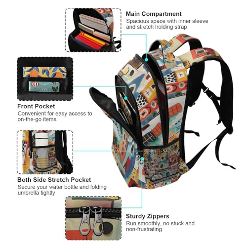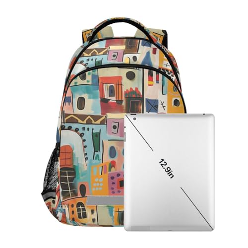 -style Colorful Buildings backpacks for kids with chest clip bookbags for student mochila para ni?a 5