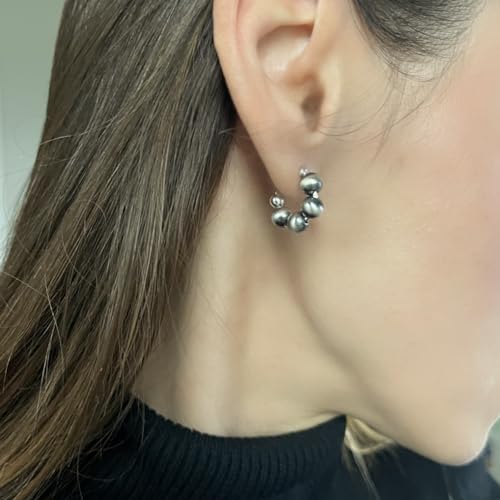 HOT ! Small Chunky Sterling Silver Navajo Pearl Style Hoop Earrings for Women Beaded Western Jewelry Handmade in the USA (Small)