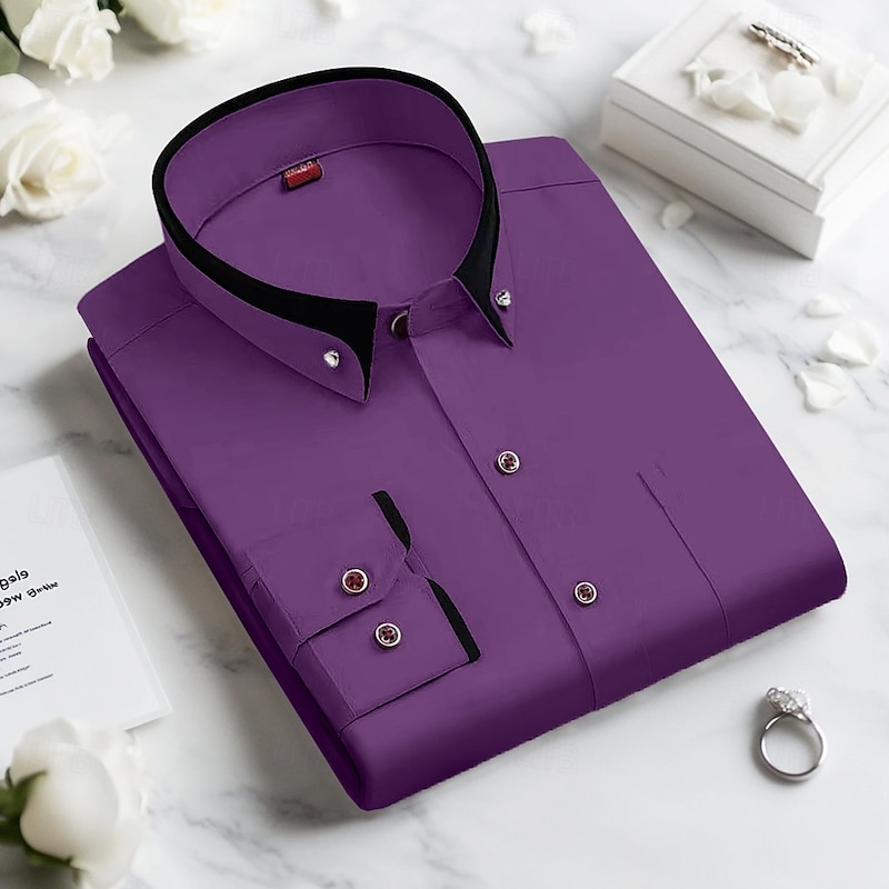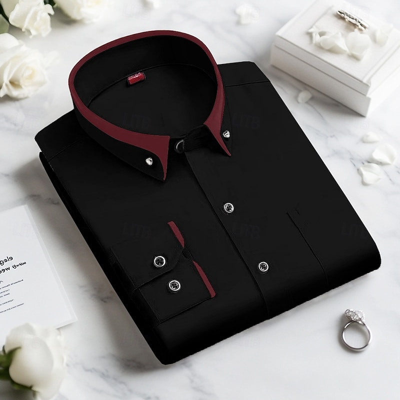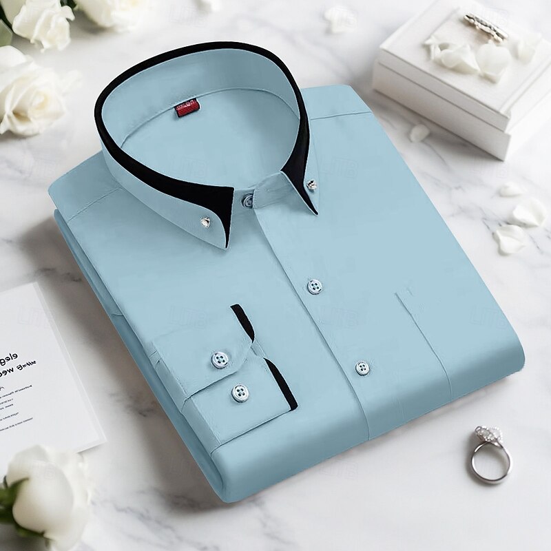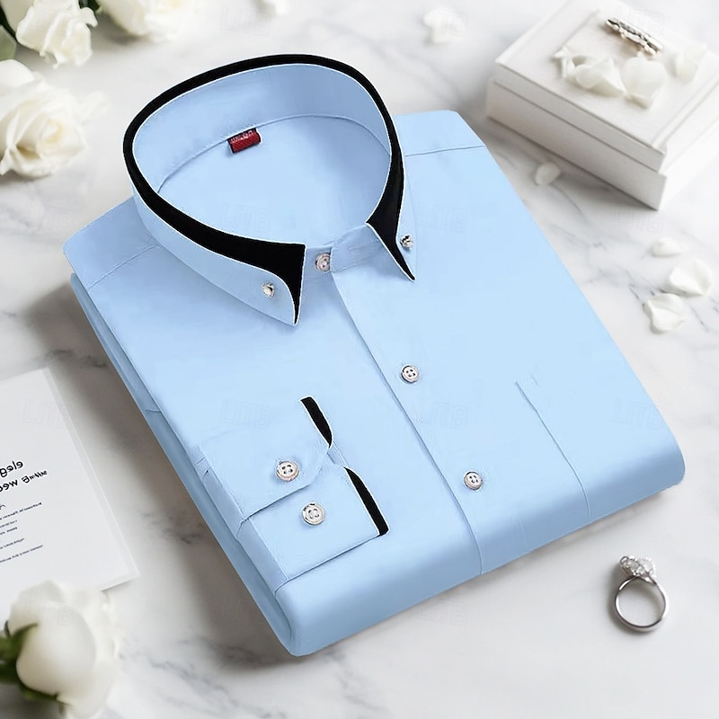 More information about Men's Dress Shirt Button Down Shirt Non Iron Shirt Solid / Plain Color Wedding Light Blue Black White Pink Long Sleeve Turndown All Seasons Clothing Apparel Patchwork