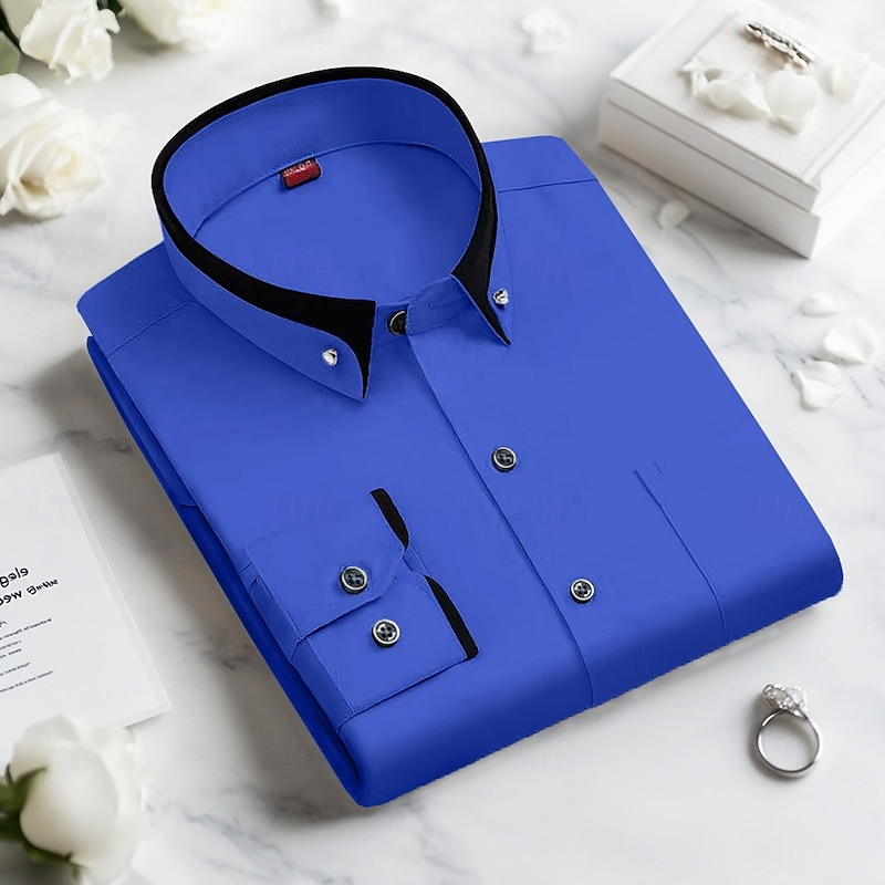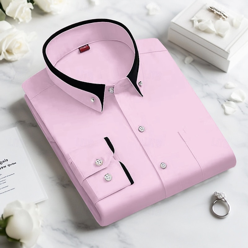 Men's Dress Shirt Button Down Shirt Non Iron Shirt Solid / Plain Color Wedding Light Blue Black White Pink Long Sleeve Turndown All Seasons Clothing Apparel Patchwork 1