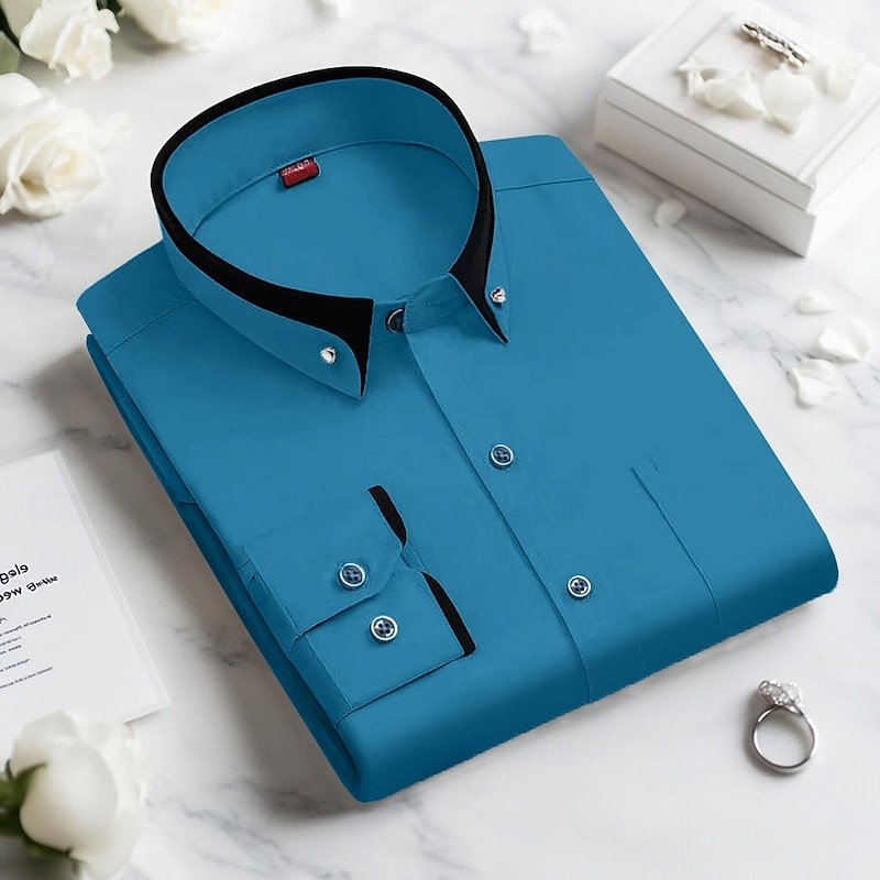 Men's Dress Shirt Button Down Shirt Non Iron Shirt Solid / Plain Color Wedding Light Blue Black White Pink Long Sleeve Turndown All Seasons Clothing Apparel Patchwork 21