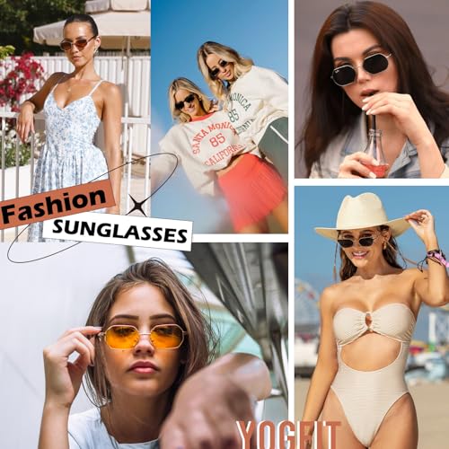 • [Retro Hexagon Frame Design]: YOGFIT's stylish Hexagon frame sunglasses keep up with the fashion trend and help you enhance your look. Inspired by the retro sunglasses style, this unisex metal-frame glasses perfectly combines retro charm with modern fashion.