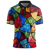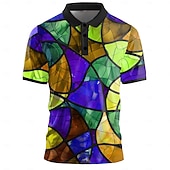 Men's Graphic Geometric Golf Shirt Short Sleeve Polo Shirts Collared Shirts Casual School Outdoor Street Dailywear 3D Print Summer Blue Purple Green 9