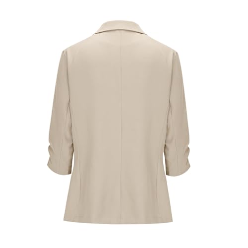 Blazers for Women Business Casual 3/4 Ruched Sleeve Slim Fit Suit Jackets Padded Shoulder Office Work Outerwear 7