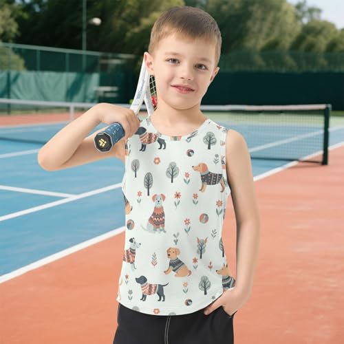 J JOYSAY Fall Dog Flowers Boys Tank Top Sleeveless Muscle Shirts Quick Dry Sport Active Workout Kids T-Shirts 3-15T 3