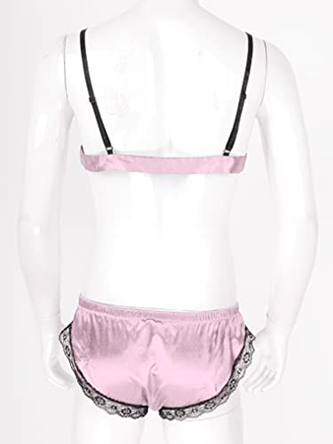 AGJGFM Men's Shiny Stain Lace Trim Cami Top with Shorts 2 Piece Set Sexy Lingerie Sissy Pajama Set 6