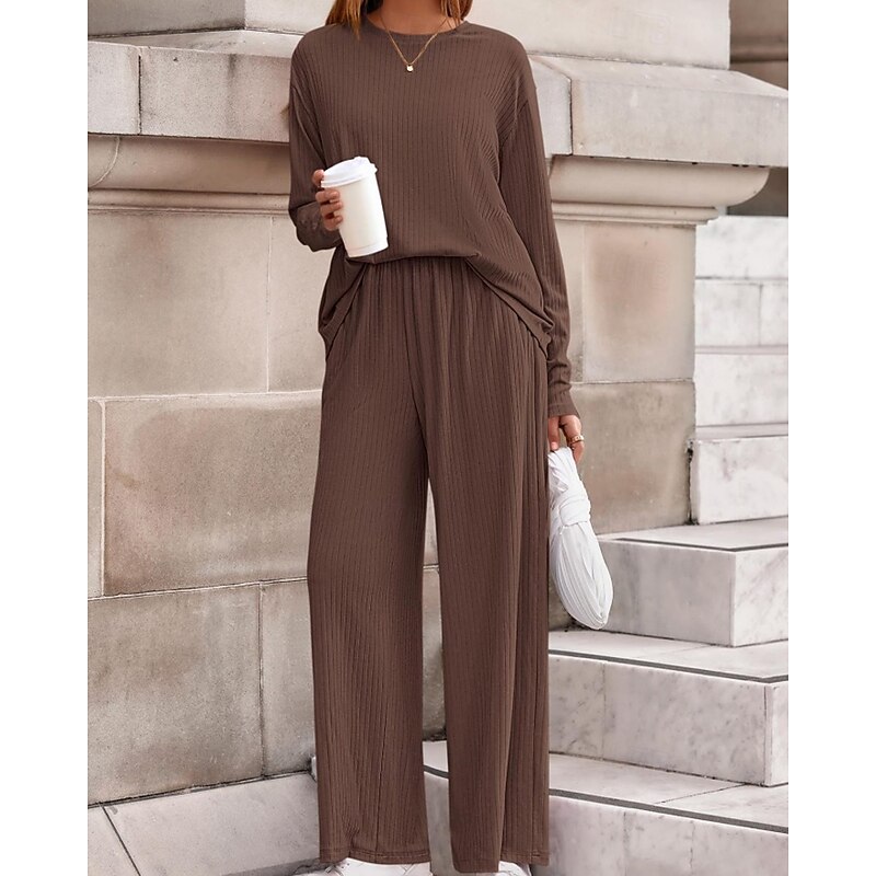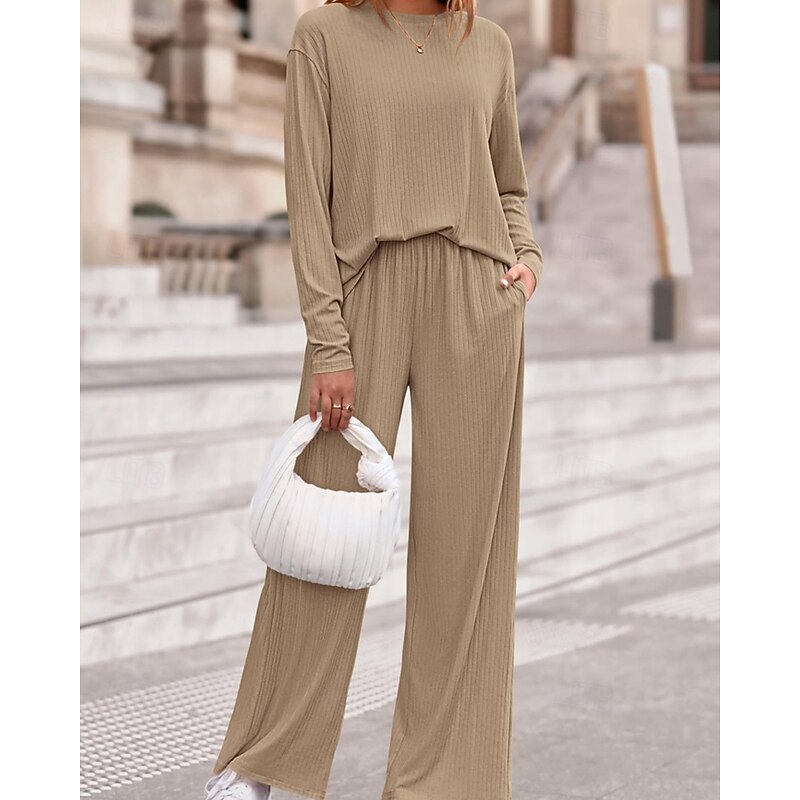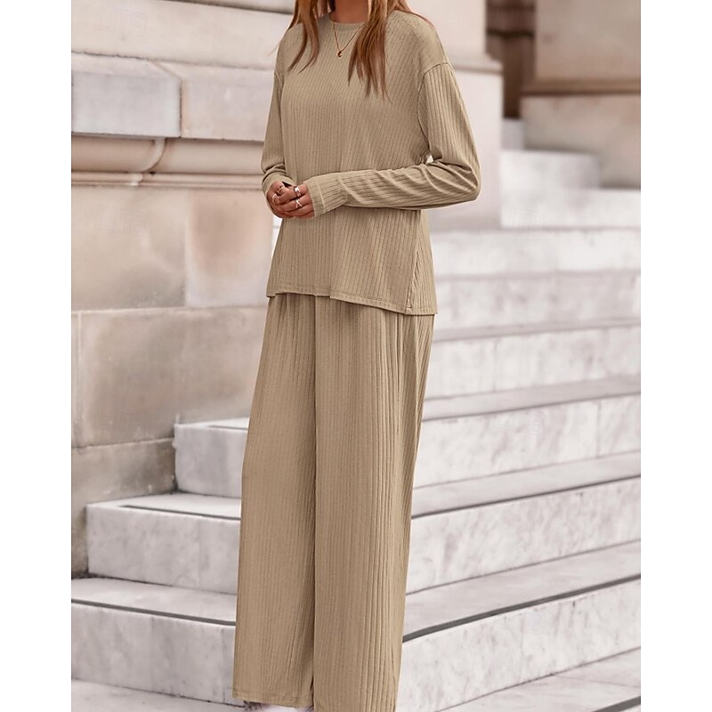 Women's Sweater Pullover Streetwear Casual Solid Color Crew Neck Knitted Long Sleeve Regular Tops Knit Daily Holiday Going out Black Pink Fall Winter 21