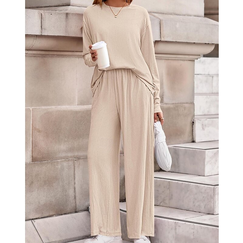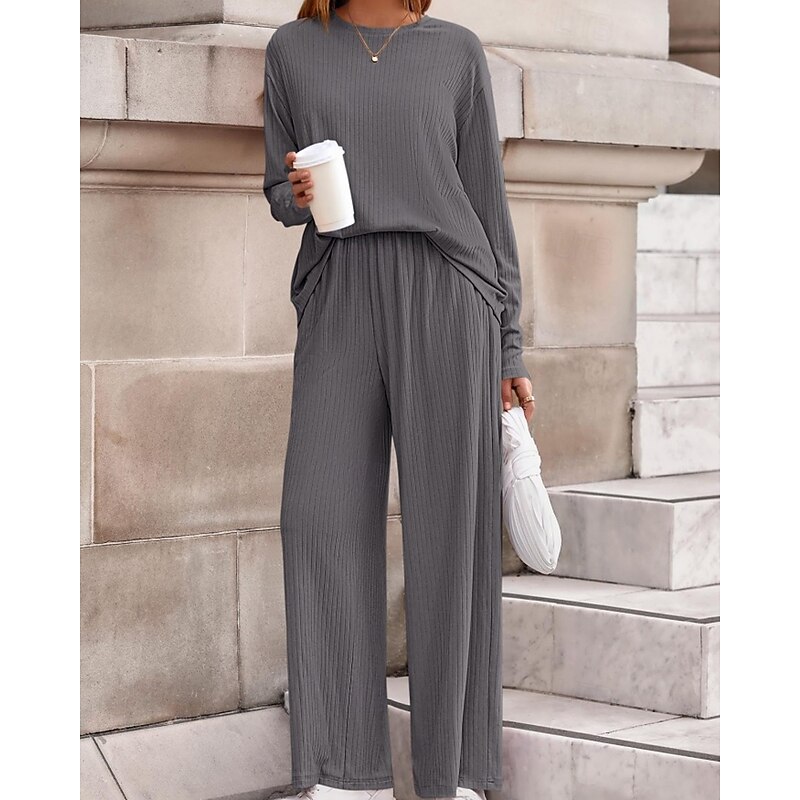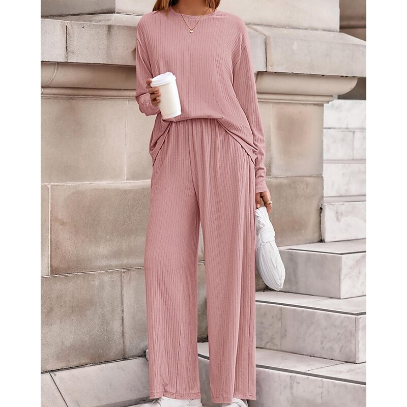 Women's Sweater Pullover Streetwear Casual Solid Color Crew Neck Knitted Long Sleeve Regular Tops Knit Daily Holiday Going out Black Pink Fall Winter 22