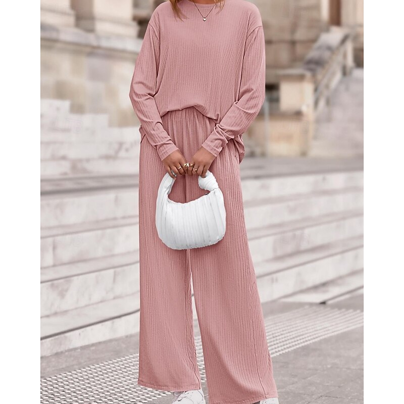 Women's Sweater Pullover Streetwear Casual Solid Color Crew Neck Knitted Long Sleeve Regular Tops Knit Daily Holiday Going out Black Pink Fall Winter 25