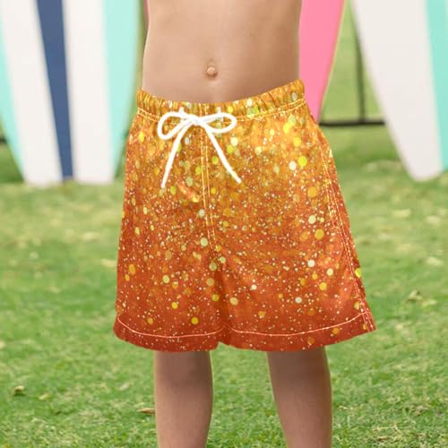 Pigsaly Boys Swim Trunks Sunset Gradient Flashing Orange Golden Yellow Glitter Boys Board Shorts Swimsuit Swimwear 3T 4