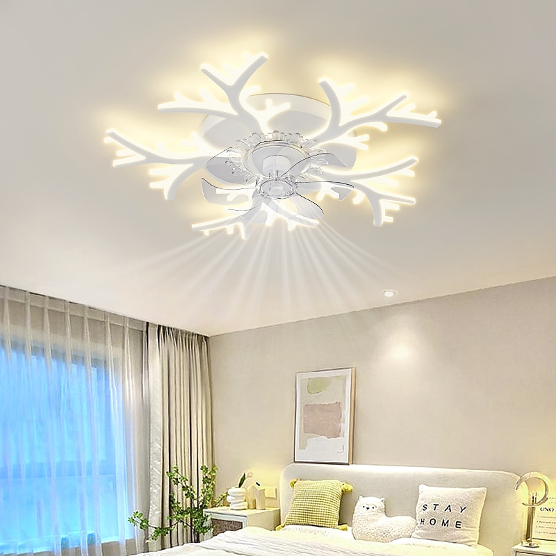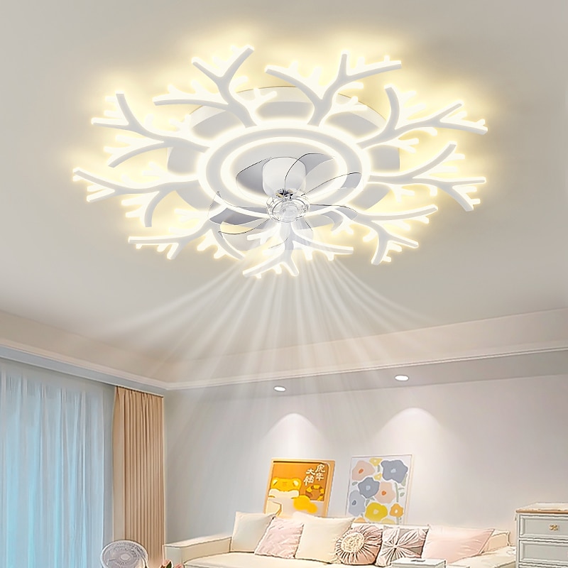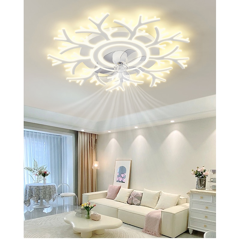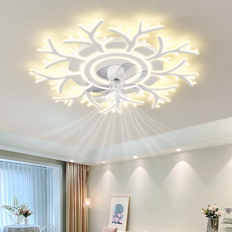LED Ceiling Fans Dimmable with Remote Contral Flower Design Flush Mount Ceiling Lamp Acrylic Lampshade Chandelier Bedroom Living Room 17