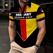 HOT ! Men's German Flag Polo Short Sleeve Polo Shirts Turndown Casual Daily Athleisure Buttons Summer Black