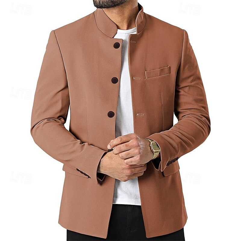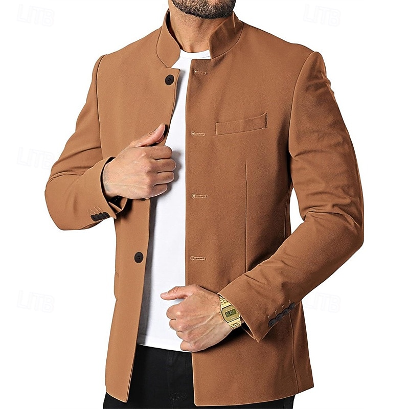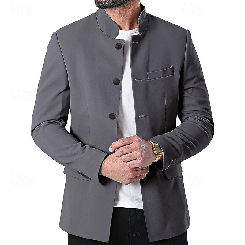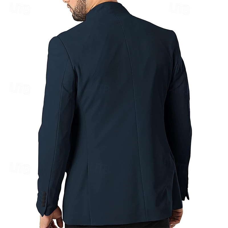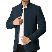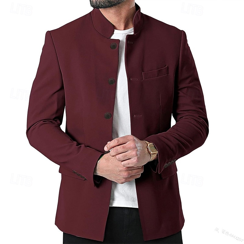 More information about Men's Casual Jacket Blazer Daily Vacation Warm Pocket Fall & Winter Plain Vintage Fashion Standing Collar Regular Black White Wine Navy Blue Jacket