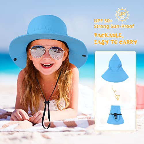 Century Star Kids Sun Hat Ponytail Girls UPF 50 Bucket Cap Summer Beach Fishing Kids Hat Wide Brim Adjustable Swim Hat 7