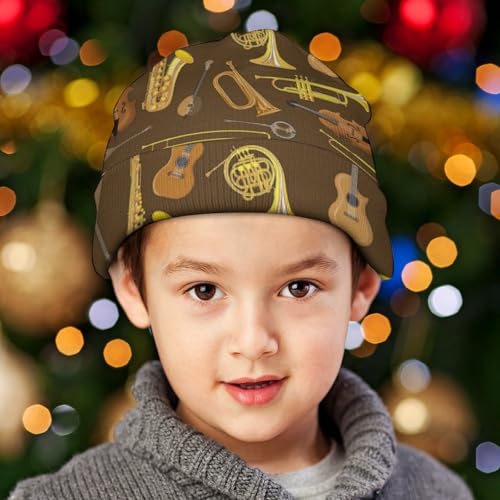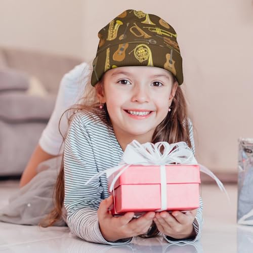 Trumpet Musical Instrument Pattern Kids Beanie Hat for for Girls Boys Children Cap Winter Knitted Chemo Cancer Headwear Accessories Gifts Decoration Black 7