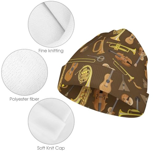 Trumpet Musical Instrument Pattern Kids Beanie Hat for for Girls Boys Children Cap Winter Knitted Chemo Cancer Headwear Accessories Gifts Decoration Black 5