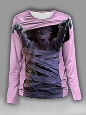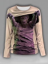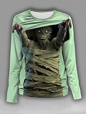 More information about Halloween Women's T Shirt Graphic Skull Vintage Fashion Stylish Long Sleeve Crew Neck Round Neck Regular Tops Daily Weekend Print Yellow Blue Purple Green Summer Spring Fall
