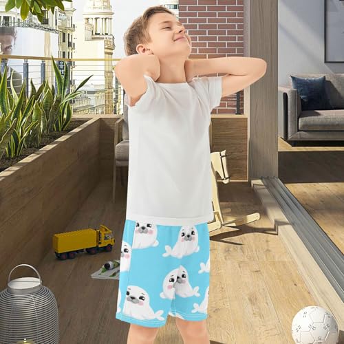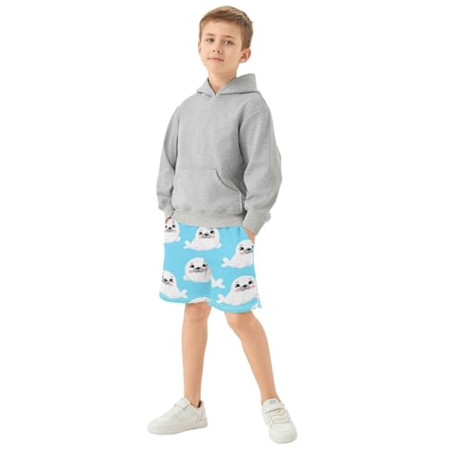 J JOYSAY Cartoon Seal Blue Boys Athletic Shorts Kids Youth Casual Shotrs with Pockets Elastic Waistband 7