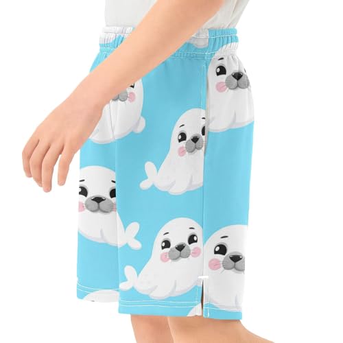 J JOYSAY Cartoon Seal Blue Boys Athletic Shorts Kids Youth Casual Shotrs with Pockets Elastic Waistband 4
