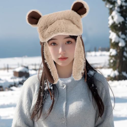 • Adorable bear ears: enjoy the winter season with a hat that features bear ears design, adding a touch of charm and warmth to your look,winter hunting thicken hat,winter hat women