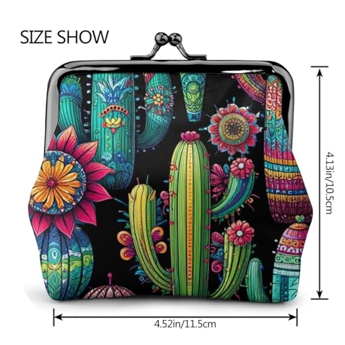 Pu Leather Buckle Coin Purse Colorful-Cactus-Pattern Girls Kiss-Lock Change Purse Wallets 4