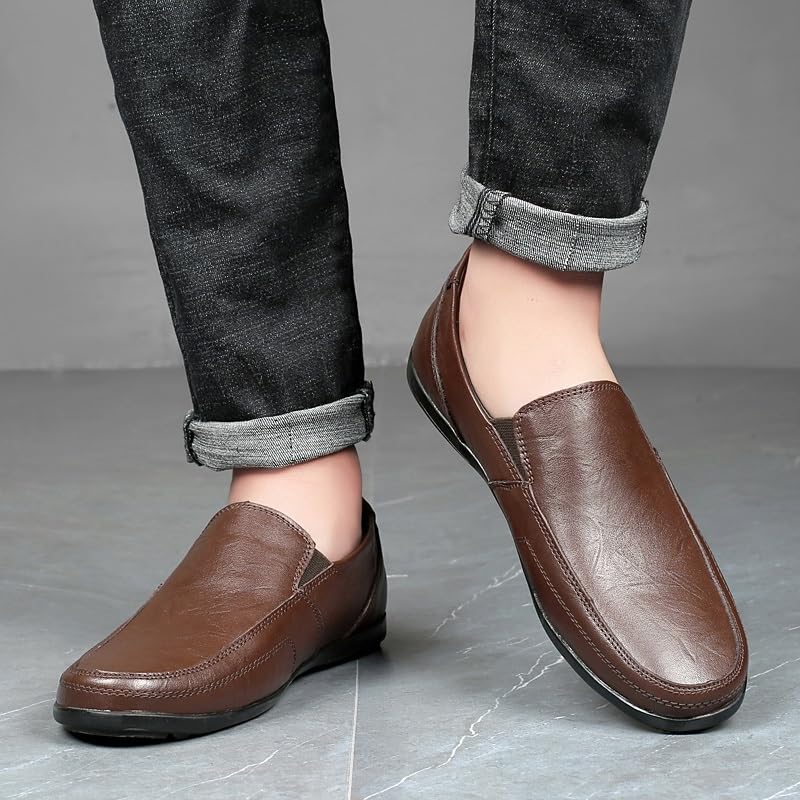 HOT ! Men's Loafers Round Toe Vegan Leather Solid Color Loafer Shoes Comfortable Flat Heel Anti-Slip Prom Classic Slip-ons
