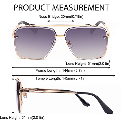 Dollger Oversized Square Aviator Sunglasses for Men Fashion Metal Frame Vintage Gradient Shades Sunglasses UV400 Protection 6