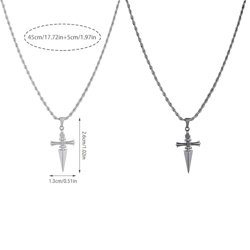 • [Set of Two - Anime-Inspired Design] Secure lobster claw clasp - Durable closure prevents accidental closure during play. This Japanese anime-inspired sword pendant necklace features delicate hilt details and a sharp blade silhouette, perfect for casual or cosplay wear.