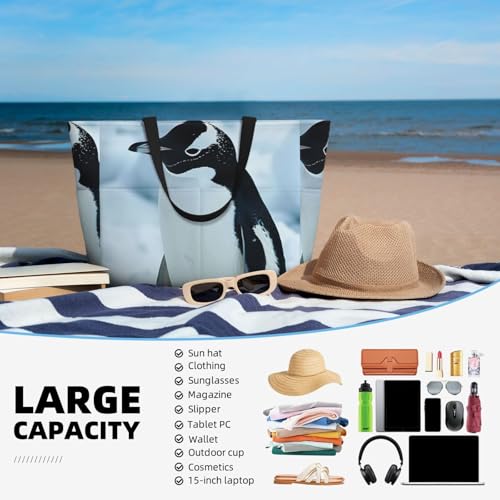 More information about Penguin Print Each Travel Bag Large Capacity Tote Bags Foldable Pool Bag Zipper Handbags Vacation