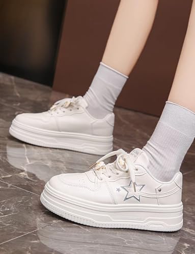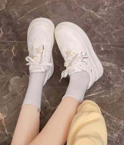HOT ! Cute Chunky Sole White Star Shoes Platform Casual Walking Sneakers for Women - Fashion Slip on Sneakers Lace up Aesthetic Shoes Cute Cat Shoelace Kitten Charm