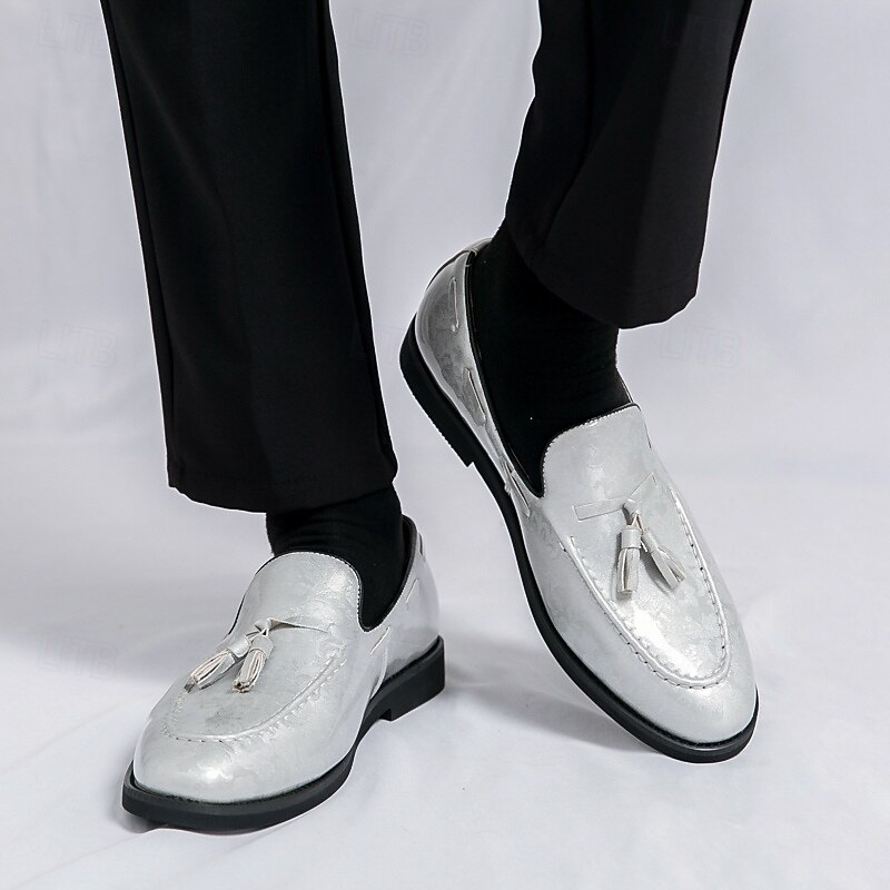 Men's Light Grey Leather Slip-On Shoes with Tassel Detail – Comfortable and Elegant Footwear for Semi-Formal Events, Casual Workdays  and Weddings 22
