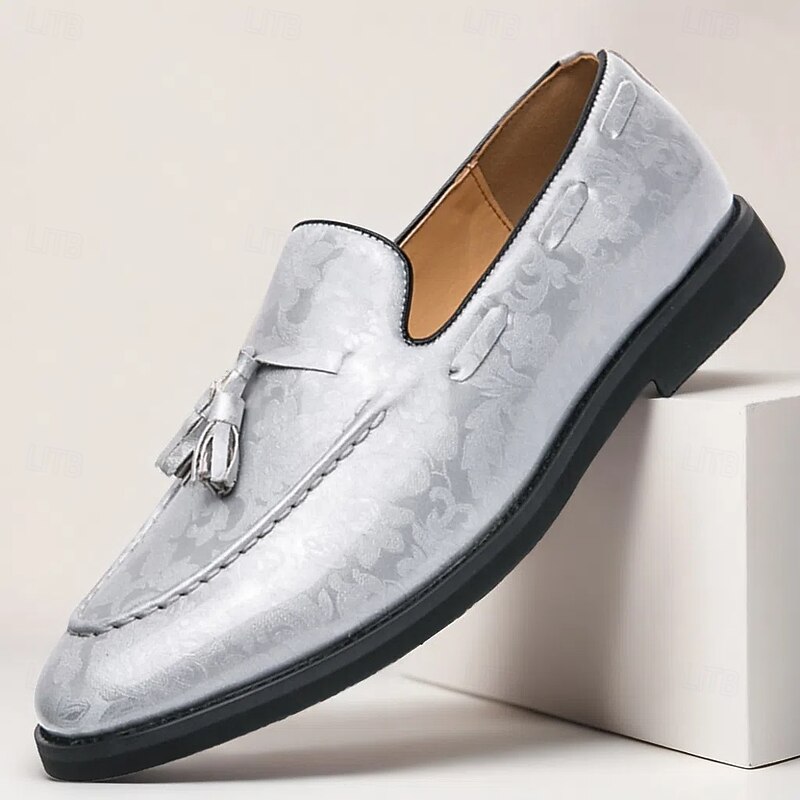 Men's Light Grey Leather Slip-On Shoes with Tassel Detail – Comfortable and Elegant Footwear for Semi-Formal Events, Casual Workdays  and Weddings 1