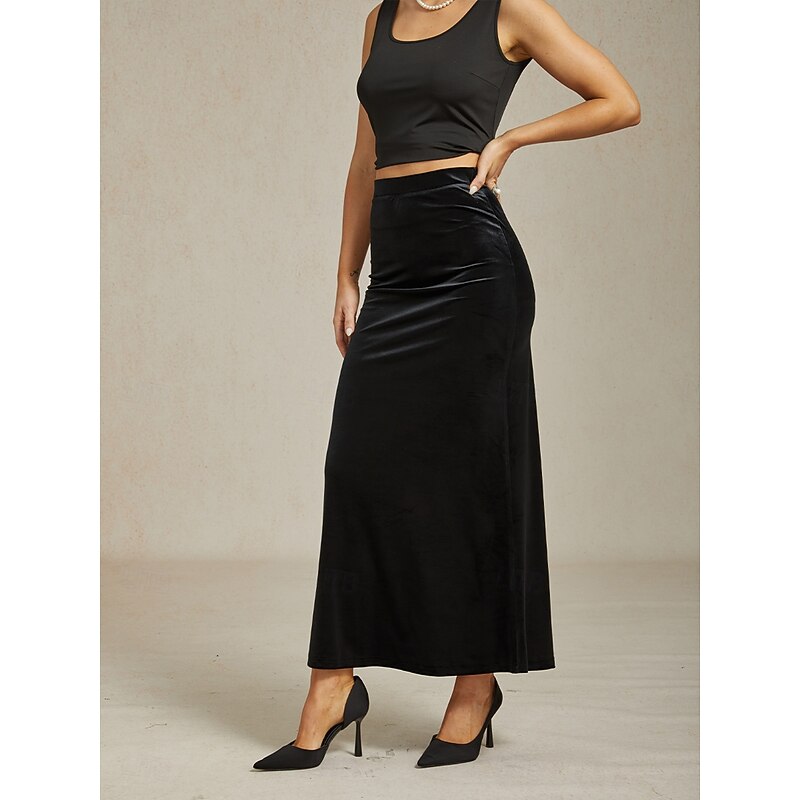 Women's Trumpet / Mermaid Elegant Vintage Long Maxi High Waist Skirts Stretchy Black Fall 100% Polyester 6