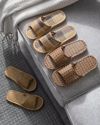 HOT ! Bamboo Slippers Sandals For Women, Japanese Tatami Straw Sandals with Non-Slip Sole, Woven Rattan Slides for Beach Indoor and House Use, Comfortable Wooden Zori Style Sandals for All-Day Walking, Boho Summer Travel Flip Flops