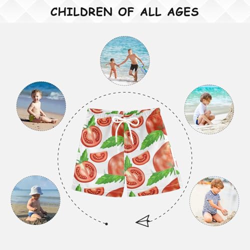 DOMIKING Tomato Slice White Toddler Boys' Swim Trunks Mesh Lining Swim Shorts for Boys Kids Adjustable Waist 2T 5