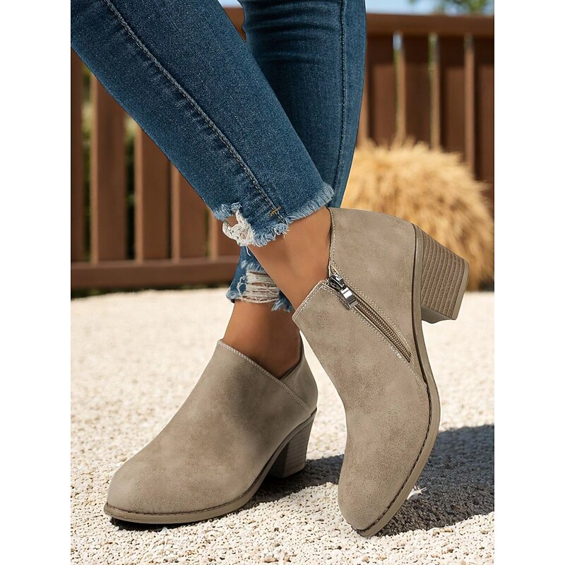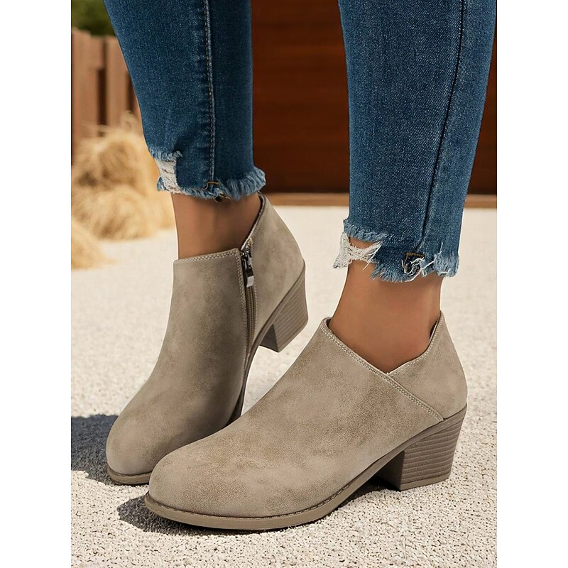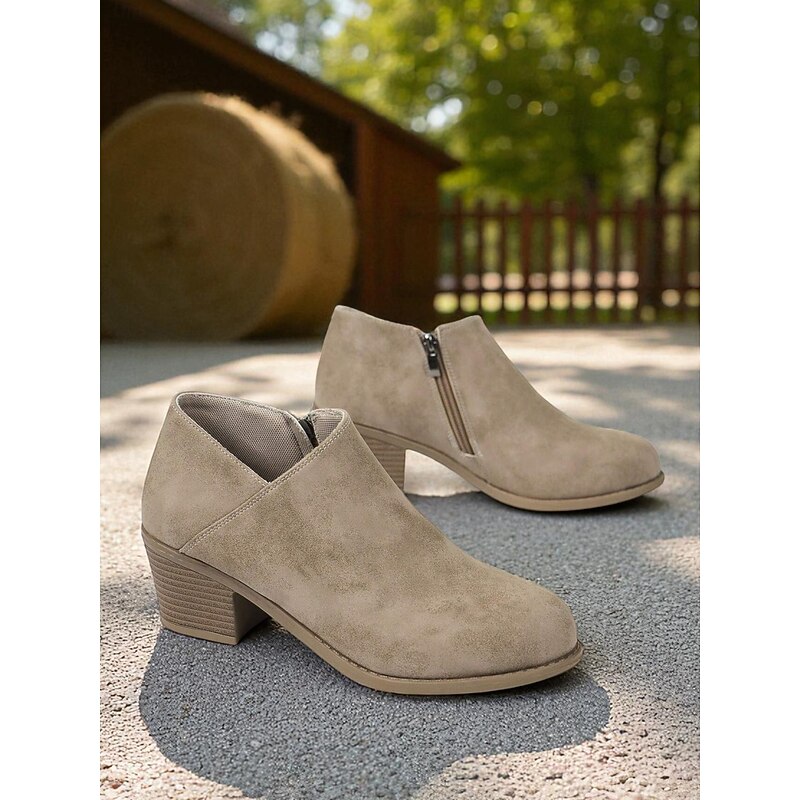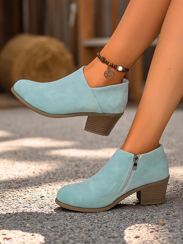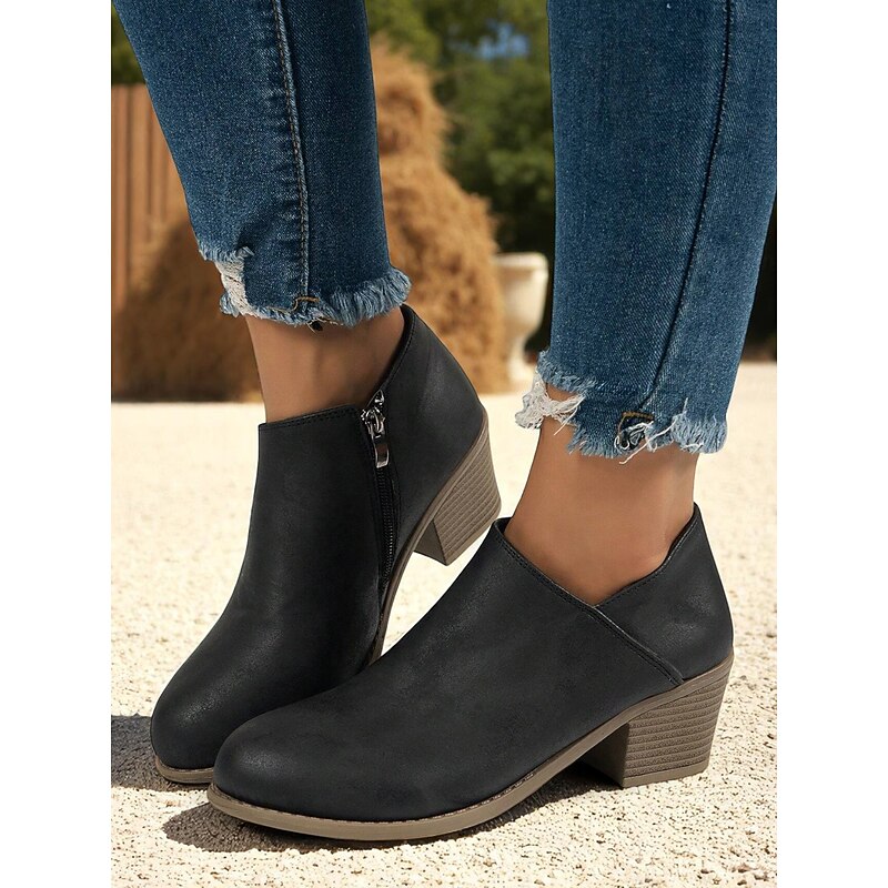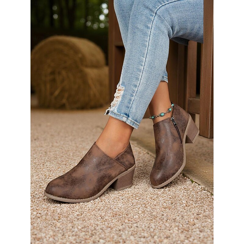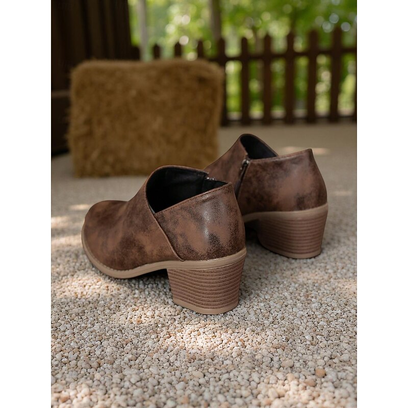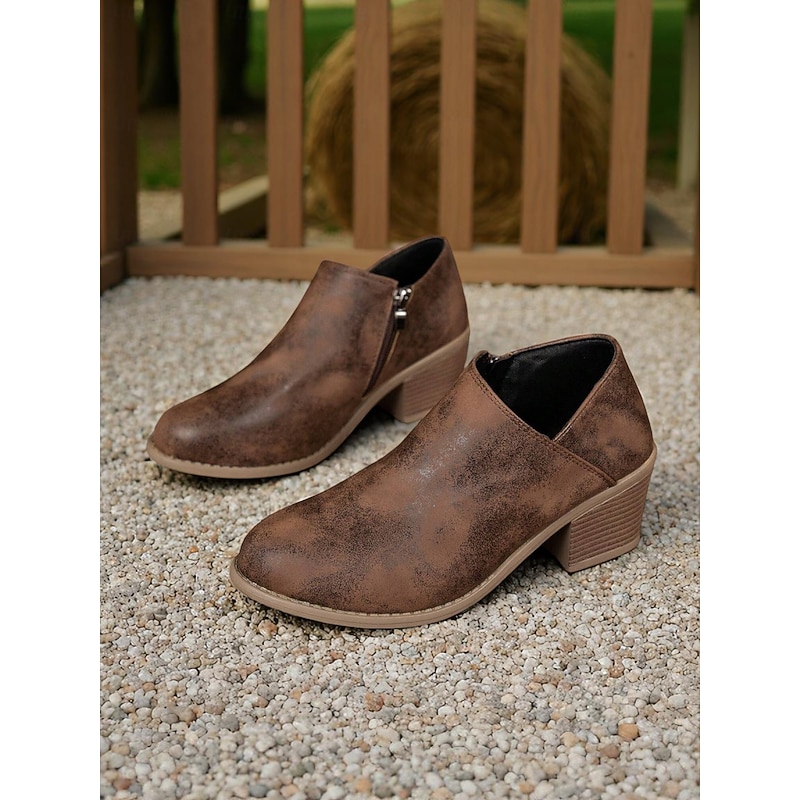 Women's Faux Leather Chunky Heel Ankle Booties – Vintage Slip-On Boots for Fall Outfits, Farm Days and Country Walks 20