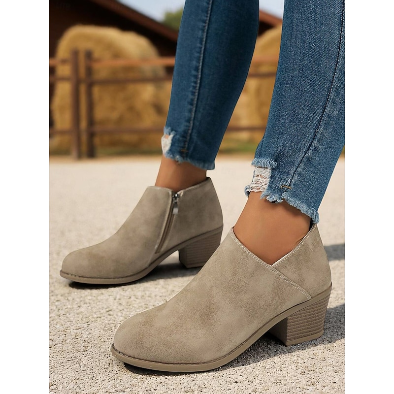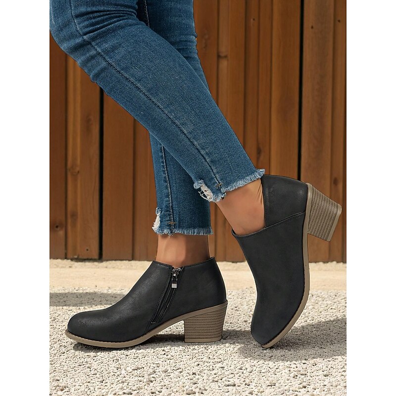 HOT ! Women's Faux Leather Chunky Heel Ankle Booties – Vintage Slip-On Boots for Fall Outfits, Farm Days and Country Walks
