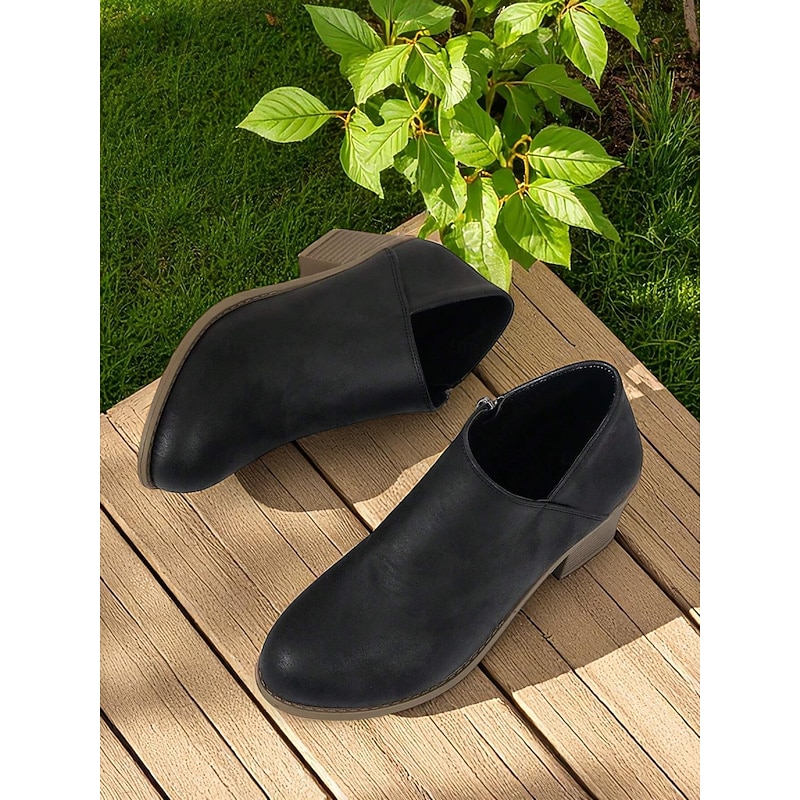 Women's Faux Leather Chunky Heel Ankle Booties – Vintage Slip-On Boots for Fall Outfits, Farm Days and Country Walks 14