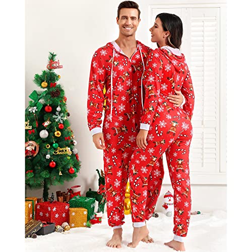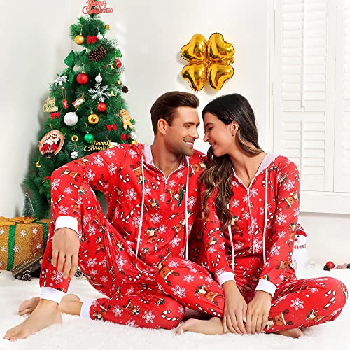 frawirshau Christmas Onesie Pajamas For Family Matching Onesies For Couples Christmas Pajamas Adult Men Reindeer Onesie Red XL 1