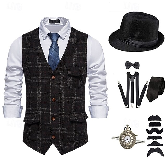 Retro Vintage Roaring 20s 1920s Outfits Waistcoat Accesories Set Gentleman Fancy Dress Men's Halloween Carnival New Year Party / Evening Masquerade New Year Eve Adults' Cravat Vest More Accessories 22