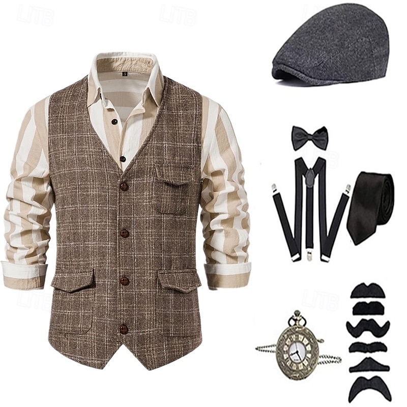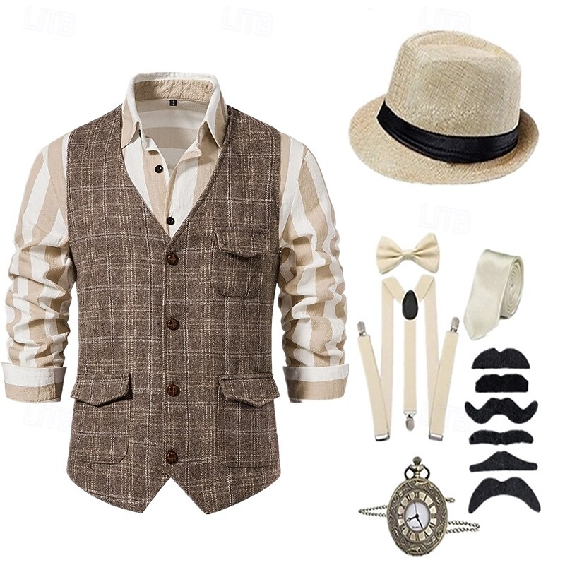 $47.99 - Retro Vintage Roaring 20s 1920s Outfits Waistcoat Accesories Set Gentleman Fancy Dress Men's Halloween Carnival New Year Party / Evening Masquerade New Year Eve Adults' Cravat Vest More Accessories 2025. Shop for cheap Outfits online? Buy at lightinthebox.com on sale today!