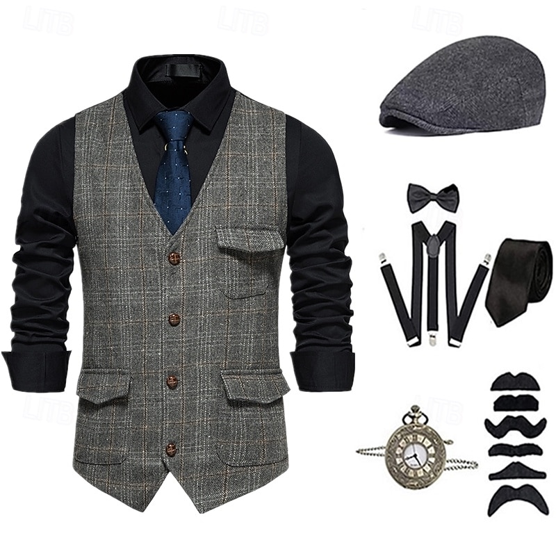 Retro Vintage Roaring 20s 1920s Outfits Waistcoat Accesories Set Gentleman Fancy Dress Men's Halloween Carnival New Year Party / Evening Masquerade New Year Eve Adults' Cravat Vest More Accessories 23