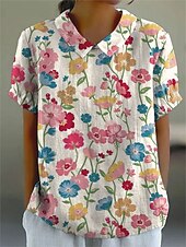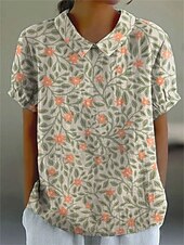 More information about Women's Blouse Floral Graphic Vintage Stylish Casual Short Sleeve Shirt Collar Regular Tops Work Daily Print White Green Beige Summer Spring