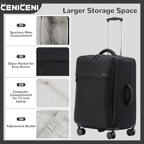 Ultralight 20" 24" Travel Luggage Set Carry-On Airline Approved Softside Suitcase, 360° Spinner Wheels, TSA Lock, with 7-Piece Travel Accessories, Black 4