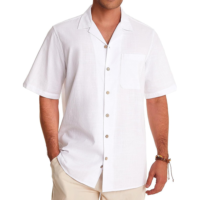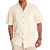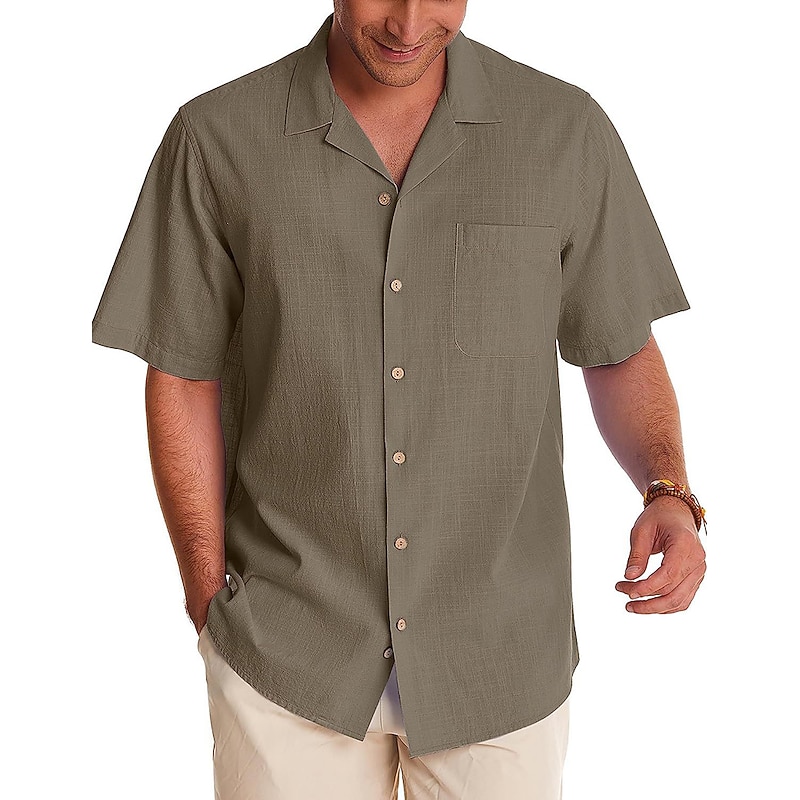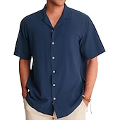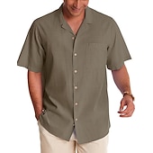 More information about Men's Linen Shirt Cotton Linen Shirt White Cotton Shirt Summer Shirt Beach Shirt Camp Collar Shirt Plain Vacation Hawaiian Black White Green Dark Blue Short Sleeve Lapel Spring & Summer Clothing