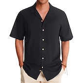 HOT ! Men's Linen Shirt Cotton Linen Shirt White Cotton Shirt Summer Shirt Beach Shirt Camp Collar Shirt Plain Vacation Hawaiian Black White Green Dark Blue Short Sleeve Lapel Spring & Summer Clothing